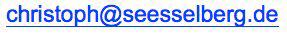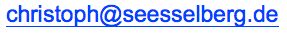 Prof. Dr.-Ing. Christoph SeeßelbergForstweg 985417 MarzlingTelefon: +49 (0)8161 961 466mobil: +49 (0)152 295 286 17FAX: +49 (0)8161 910 87 82Internet: www.seesselberg.deE-Mail: